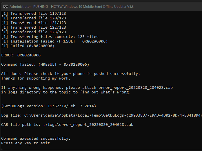 If this is successful, you should get a message that the update has been started on the device. In my case, I got an error that stated it failed, however, loading up Settings > Phone Update on my phone showed that it was actually successful and has began updating.