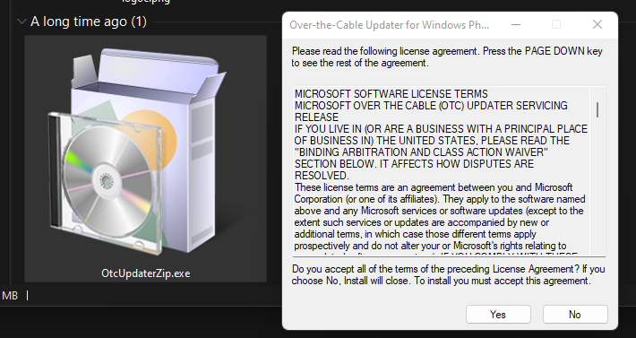 Now that the patch is in place and we have a destination folder, run OtcUpdaterZip.exe