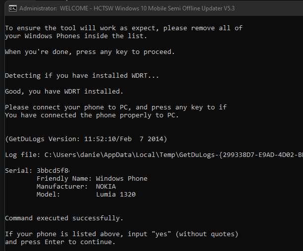 During this process, it should show up your phones model. When it does, type 'yes' into the command prompt and push Enter.